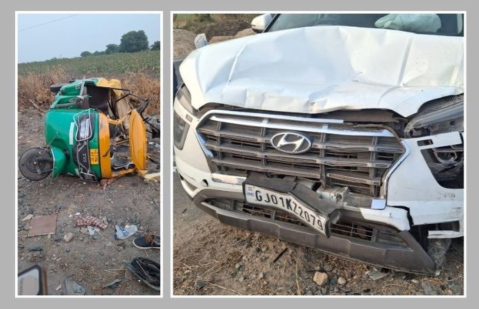 Triple Accident in Surendranagar: સુરેન્દ્રનગર જિલ્લામાં અકસ્માતની હૃદયદ્રાવક ઘટના સામે આવી છે. દસાડા તાલુકાના પાનવા ગામ પાસે બે કાર અને એક રિક્ષા વચ્ચે સર્જાયેલા ત્રિપલ અકસ્માતમાં રિક્ષામાં સવાર બે વ્યક્તિઓના ઘટનાસ્થળે જ કરુણ મોત નિપજ્યાં છે, જ્યારે બે મહિલાઓ સહિત ત્રણ લોકો ગંભીર રીતે ઈજાગ્રસ્ત થયા છે.