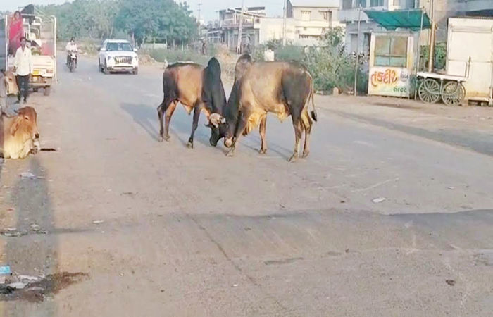 - ભુરાંટા થયેલા બંને આખલાઓએ 20 મીનીટ સુધી આખો રોડ બાનમાં લીધો હતો