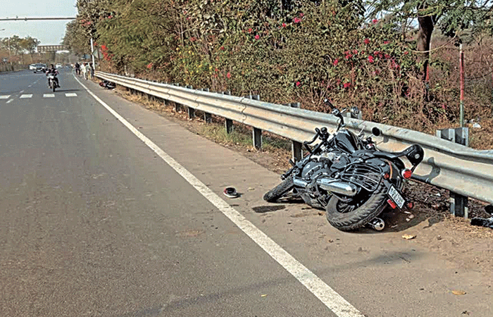 ત્યારે ઘનશ્યામસિંહ બાઇક ચલાવતા હતાં. તેઓ ઇન્દ્રોડા ગામના કટ પાસેથી રસ્તો ઓળંગી