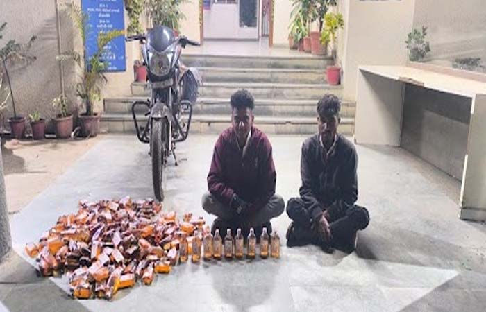 છાણી પોલીસની ટીમ ગઈકાલે પેટ્રોલિંગમાં નીકળી રહી હતી તે દરમિયાન મોટરસાયકલ ઉપર આવી જ રીતે દારૂની ખેપ મારવામાં આવી રહી હોવાની વિગતો મળતા પોલીસે પોલીસ સ્ટેશન સામેથી પસાર થતાં બે યુવકોને ઝડપી પાડ્યા હતા. પોલીસે મોટરસાયકલની પેટ્રોલની ટાંકી તપાસતા અંદરથી ચોર ખાનું મળી આવ્યું હતું. જેમાંથી કુલ રૂ. 28,000ની 188 દારૂની બોટલ મળી હતી. પોલીસે આ અંગે ગોપાલ ચેતનભાઇ રાઠવા (ડોલરીયા ગામ છોટાઉદેપુર) અને અજય ગોપાલભાઈ રાઠવા (ખોરવણીયા ગામ, છોટાઉદેપુર) ને ઝડપી પાડ્યા હતા.
