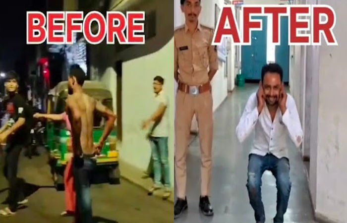 Vadodara : વડોદરાના નવીધરતી વિસ્તારમાં રાત્રે પાર્કિંગના મુદ્દે તકરાર થયા બાદ વાહનોની તોડફોડ કરનાર માથાભારે યુવકને પોલીસે પાઠ ભણાવતા તેણે કાન પકડીને માફી માગી લીધી.