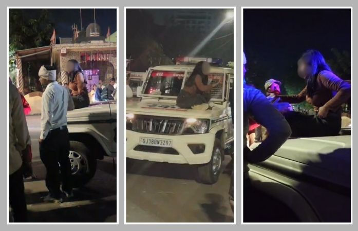પોલીસ વાન પર ચઢી ગઈ સગીરા