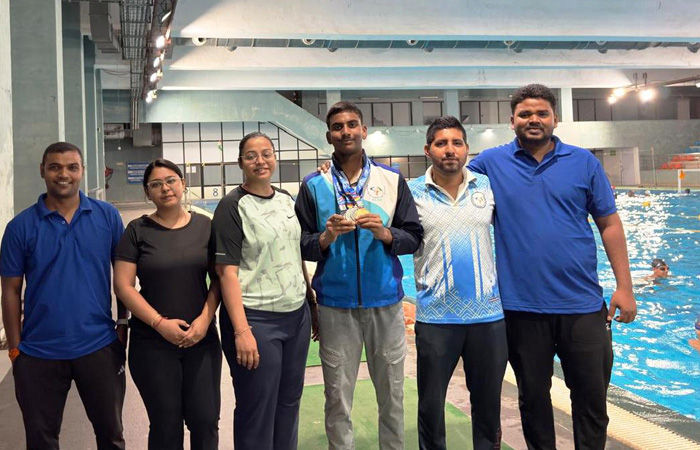 અમદાવાદના સરદાર પટેલ સ્ટેડિયમ ખાતે તા. ૨૦ થી ૨૩ માર્ચ દરમિયાન યોજાયેલી ૨૭મી નેશનલ ડેફ સિનિયર સ્વિમિંગ ચેમ્પિયનશિપમાં વડોદરાના તરવૈયા અરુશ લાંજેવારે શાનદાર દેખાવ કર્યો છે.