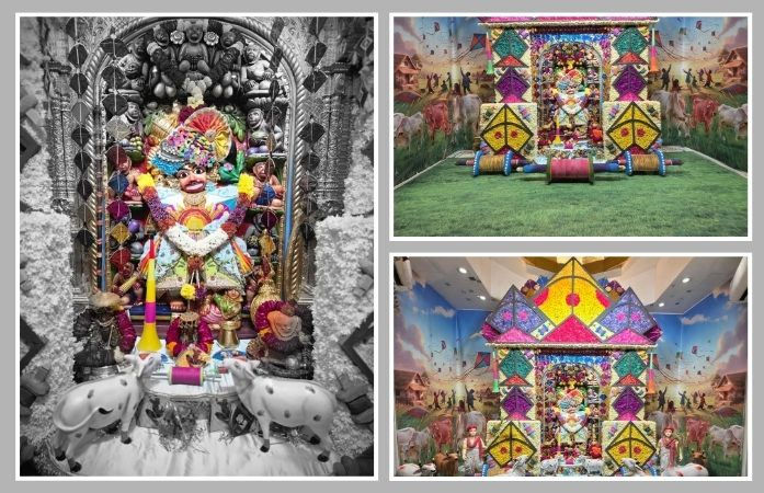 મંદિરની ગૌશાળામાં સવારે 6થી 11 દરમિયાન શાસ્ત્રોક્ત વિધિથી ગૌ-પૂજનનો કાર્યક્રમ યોજાયો હતો. સંતો અને યજમાનો દ્વારા 108 ગાયોનું પૂજન કરવામાં આવ્યું હતું. ગૌમાતાને કેસર જળથી સ્નાન કરાવી, રેશમી વસ્ત્રો પહેરાવી અને ગોળની મીઠાઈઓનો થાળ ધરાવીને પુષ્પવૃષ્ટિ કરવામાં આવી હતી. આ સાથે ગૌપાલકોનું પણ વિશેષ સન્માન કરવામાં આવ્યું હતું.