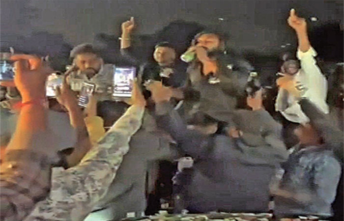 આ ઉજવણી દરમિયાન બિયરના કેન પીવાયા હોવાનું અને ડીજેના તાલે નશામાં ઝૂમતા મહેફિલના દ્રશ્યો વીડિયોમાં દેખાઈ રહ્યાં છે. રાજ્યમાં દારૂ અને ડ્રગ્સ મામલે રાજ્ય સરકારને ભીંસમાં લેવામાં આવી રહી છે ત્યારે આ દ્રશ્યો જાણે લડતને સાચી ઠેરવતું હોય તેવા દ્રશ્યો સામે આવતા તંત્ર સામે પણ અનેક સવાલો ઉભા થયા છે.