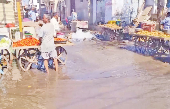 - રસ્તા પર પાણી ભરાઇ રહેતા રહિશો અને બજારમાં ખરીદી કરવા આવતા લોકોને હાલાકી : તાત્કાલિક રિપેરિંગ હાથ ધરવા માંગ