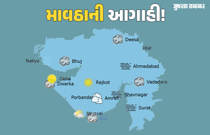 હવામાન વિભાગની આગાહી મુજબ આજે પોરબંદર, દ્વારકા, જામનગર, મોરબી અને કચ્છમાં કમોસમી વરસાદ પડી શકે છે, ઉત્તર ગુજરાતમાં બનાસકાંઠા, સાબરકાંઠા અને પાટણ જિલ્લામાં પણ હવામાનમાં પલટાના સંકેત છે. વેસ્ટર્ન ડિસ્ટર્બન્સના કારણે આગામી દિવસોમાં ઠંડીમાં વધારો થશે તેવું પણ અનુમાન લગાવવામાં આવ્યું છે. બાકીના જિલ્લાઓમાં હવામાન સૂકું રહેશે.