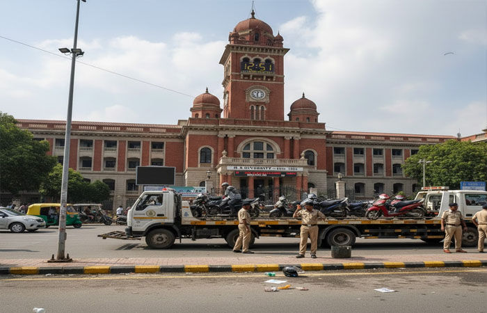 Vadodara Traffic Police : વડોદરા સયાજીગંજ, એમ.એસ. યુનિવર્સિટી વિસ્તારમાં વિદ્યાર્થીઓના પાર્ક દ્વિચક્રી વાહનો ટોઈંગ કરીને ટ્રાફિક પોલીસ મથક સયાજીગંજ ખાતે લઈ આવતા ઉશ્કેરાયેલા વિદ્યાર્થીઓએ સયાજીગંજ ટ્રાફિક પોલીસ મથકે હોબાળો મચાવ્યો હતો.