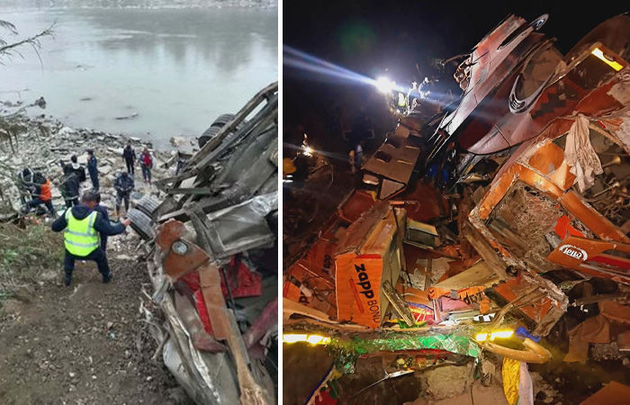 નેપાળના ધાદિંગ જિલ્લામાં સોમવારે વહેલી સવારે અંદાજે 1:30 વાગ્યે એક ભયાનક બસ અકસ્માત સર્જાયો હતો. પોખરાથી કાઠમંડુ જઈ રહેલી મુસાફરોને લઈ જતી બસ બેનીઘાટ રોરાંગ ગ્રામીણ નગરપાલિકા-5 પાસે પૃથ્વી હાઇવે પરથી નીચે ઉતરી ગઈ હતી અને અંદાજે 300 મીટર નીચે સીધી ત્રિશૂલી નદીમાં ખાબકી હતી. અકસ્માત એટલો ગંભીર હતો કે બસ નદી કિનારે પહોંચતા સુધીમાં સંપૂર્ણપણે ક્ષતિગ્રસ્ત થઈ ગઈ હતી.