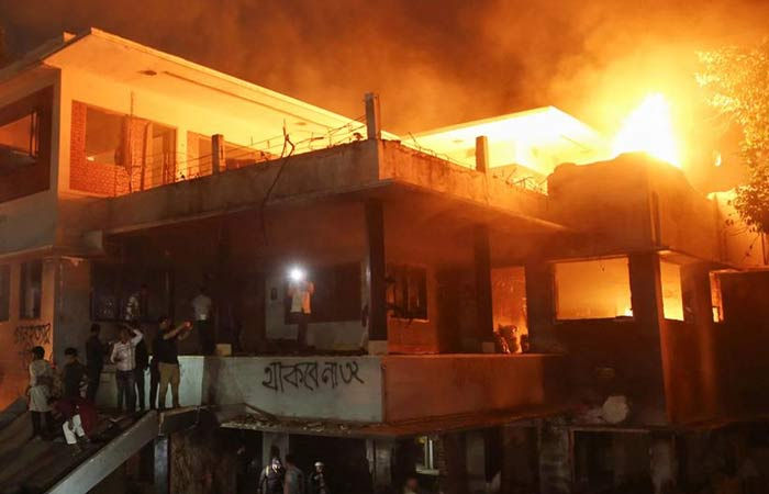 બાંગ્લાદેશમાં પોતાના શાસન વિરુદ્ધ થયેલા હિંસક આંદોલન પછી ભારત ભાગી આવેલાં પૂર્વ વડાંપ્રધાન શેખ હસીનાએ ગુરુવારે અજ્ઞાાત સ્થળેથી અવામી લીગના કાર્યકરોને ઓનલાઈન સંબોધન કર્યું હતું. ત્યાર પછી કટ્ટરવાદી તત્વોએ શુક્રવારે અવામી લીગના નેતાઓના ઘરો પર તોડફોડ કરી હતી અને આગ લગાવી દીધી હતી. તેમણે શેખ હસીનાના ધાનમંડી કાતેના પૈતૃક ઘરને પણ નિશાન બનાવતા તોડફોડ કરી હતી.