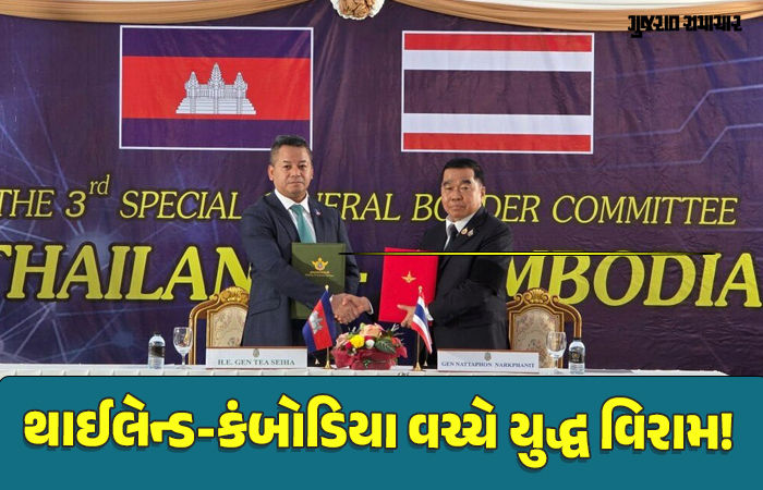 Thailand Cambodia War: એશિયામાં બે દેશો થાઇલૅન્ડ અને કંબોડિયા વચ્ચે ચાલી રહેલા યુદ્ધ વચ્ચે સીઝ ફાયર(યુદ્ધ વિરામ)નું એલાન થતાં લોકોએ રાહતનો શ્વાસ લીધો છે. શનિવારે બંને દેશો તાત્કાલિક પ્રભાવથી યુદ્ધ વિરામ લાગુ કરવાના પર સહમતિ આપી છે. આ જાણકારી બંને દેશોના રક્ષા મંત્રીઓ તરફથી જાહેર કરાયેલા સંયુક્ત નિવેદનમાં આપવામાં આવી છે. આ સીઝ ફાયર સ્થાનિક સમય પ્રમાણે 27 ડિસેમ્બરના બપોરે 12 વાગ્યા અમલમાં આવશે.