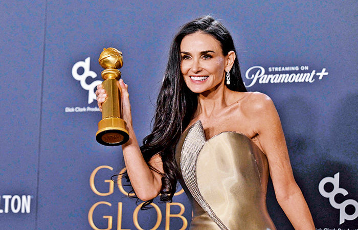લોસ એન્જેલસ : 'ધ સબસ્ટન્સ' ફિલ્મમાં ભૂમિકા ભજવવા બદલ ૬૨ વર્ષની ડેમી મૂરને ગોલ્ડન ગ્લોબ એવોર્ડ ૨૦૨૫માં મ્યુઝિકલ અથવા કોમેડી ફિલ્મ કેટેગરીમાં શ્રેષ્ઠ અભિનેત્રીનો એવોર્ડ મળતાં ભાવુક બની ગયેલી ડેમી મૂરે આપેલું વકતવ્ય વાઇરલ બની ગયું હતું. પાંચ જાન્યુઆરીએ મંચ પરથી આપેલાં ડેમીના આ વક્તવ્યને સાડા ચાર લાખ લોકોએ જોયું હતું.