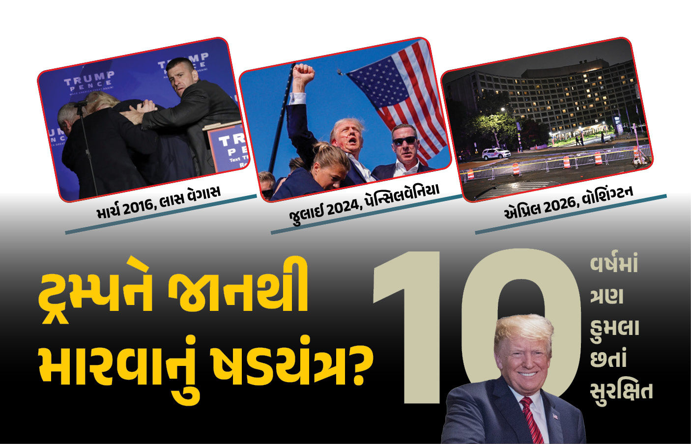 History of attacks on Donald Trump : અમેરિકાના વોશિંગ્ટનમાં આયોજિત હાઈ-પ્રોફાઇલ 'કોરસપોન્ડન્ટ ડિનર'માં અંધાધૂંધ ગોળીબાર થતા રાષ્ટ્રપ્રમુખ ડોનાલ્ડ ટ્રમ્પની સુરક્ષા પર ગંભીર સવાલો ઉઠ્યા છે. આ ઘટનાએ વિશ્વને હચમચાવી દીધું છે. આ ભવ્ય આયોજનમાં અમેરિકાના રાષ્ટ્રપ્રમુખ ડોનાલ્ડ ટ્રમ્પ, ફર્સ્ટ લેડી મેલાનિયા ટ્રમ્પ, ઉપરાષ્ટ્રપ્રમુખ જેડી વેન્સ, સંરક્ષણ સચિવ પીટ હેગસેથ અને વિદેશ સચિવ માર્કો રુબિયો ઉપરાંત અન્ય ઘણા નેતાઓ અને મહેમાનો હાજર હતા. સદનસીબે તમામ મહેમાનો સુરક્ષિત છે. જોકે, ટ્રમ્પ પર હુમલો થયો હોય તેવી આ કોઈ પહેલી ઘટના નથી. આ ત્રીજી વખત છે જ્યારે ટ્રમ્પને નિશાન બનાવવામાં આવ્યા હોય.