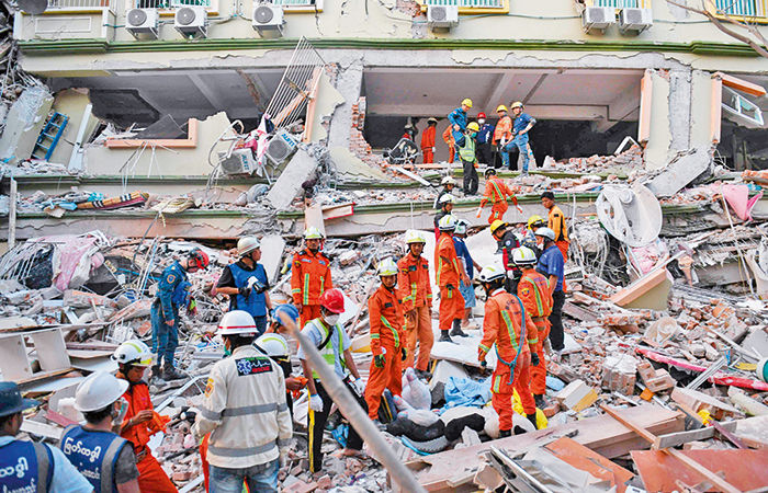 દુનિયાના સૌથી ગરીબ દેશોમાંના એક અને ગૃહ યુદ્ધનો સામનો કરી રહેલા મ્યાંમારમાં ભૂકંપથી ૧૭૦૦થી વધુના મોત નીપજ્યાં છે અને અગણિત લોકોના મૃતદેહો ઈમારતોના કાટમાળ નીચે દબાયેલા છે, જેના કારણે મ્યાંમારના બીજા સૌથી મોટા શહેર માંડલેમાં રસ્તાઓ પર દુર્ગંધ ફેલાઈ રહી છે. બીજીબાજુ અનેક લોકો કાટમાળ નીચે તેમના પરિવારજનો હજુ પણ જીવિત હશે તેવી આશાએ હાથથી ઈમારતોનો કાટમાળ ખસેડી રહ્યા છે.