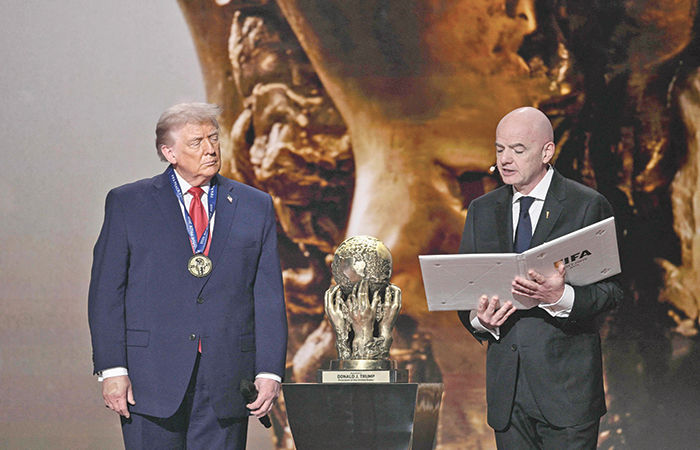 વોશિંગ્ટન : અમેરિકન પ્રમુખ ડોનાલ્ડ ટ્રમ્પને ૨૦૨૬ના ફિફા વર્લ્ડ કપ ડ્રો વખતે નવા લોન્ચ થયેલા ફિફા પીસ પ્રાઇઝ વડે સન્માનિત કરવામાં આવ્યા હતા. આમ શાંતિના નોબેલ ઇનામ માટે ટળવળતા ટ્રમ્પને નોબેલ તો ન મળ્યું, પરંતુ ફિફા પીસ પ્રાઇઝ જરૂર મળ્યું હતું. ફિફાના પ્રમુખ ગિયાની ઇન્ફેન્ટિનો અને ટ્રમ્પ ખાસ મિત્ર છે. ફિફા પ્રમુખે તો ત્યાં સુધી કહી દીધું હતું કે ટ્રમ્પને તેના શાંતિ પ્રયત્નો બદલ નોબેલ ઇનામ તો મળવું જ જોઈએ. આજે ગાઝામાં શાંતિ તેમના પ્રયત્નોના લીધે જ સ્થપાઈ છે.