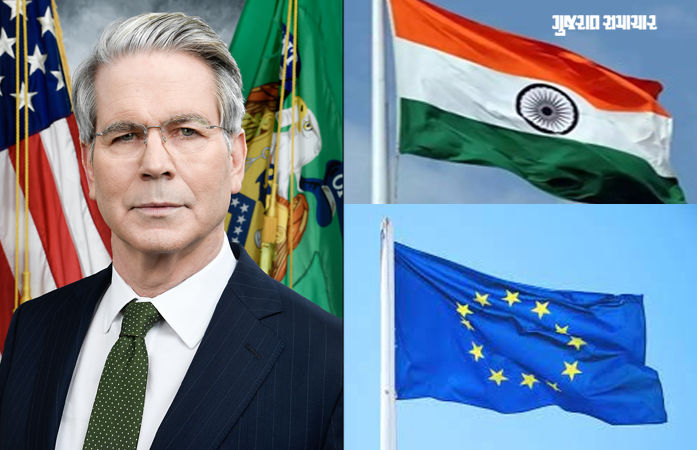 ડોનાલ્ડ ટ્રમ્પના નાણાં મંત્રી સ્કોટ બેસેન્ટે ભડકેલા અંદાજમાં કહ્યું છે કે એક તરફ અમેરિકાએ રશિયા પાસેથી તેલ ખરીદી આડકતરી રીતે યુદ્ધમાં સપોર્ટ કરતાં ભારત પર 25 ટકા વધુ ટેરિફ લગાવ્યો છે, તેવામાં યુરોપિયન યુનિયન ભારત સાથે વેપાર સોદો કરી રહ્યું છે. યુરોપિયન દેશ પોતાના જ સામે યુદ્ધનું ફંડીગ કરી રહ્યું છે આ બધુ રશિયાના તેલના માધ્યમ થકી થઈ રહ્યું છે. સ્કોટ બેસેન્ટે વધુમાં કહ્યું કે અમે ભારત પર રશિયા પાસેથી તેલ ખરીદવાના કારણે 25 ટકા વધારાનો ટેરિફ લગાવ્યો, તમે અંદાજો લગાવો કે છેલ્લા સપ્તાહમાં શું થયું? યુરોપિયન યુનિયને ભારત સાથે ટ્રેડ ડીલ પર સહી કરી લીધી