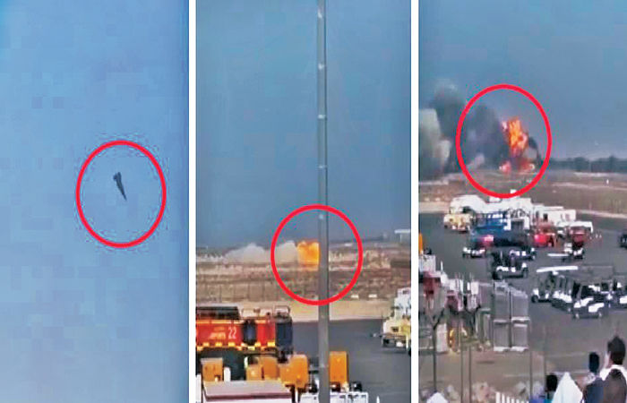 દુબઈમાં પાંચ દિવસના એર શોનો શુક્રવારે અંતિમ દિવસ હતો. દુનિયાના ૨૦૦ જેટલા ફાઈટર જેટ અહીં આવ્યા હતા. અલ મક્તૂમ આંતરરાષ્ટ્રીય એરપોર્ટ પર ભારતનું સ્વદેશી તેજસ ફાઈટર જેટ હવાઈ કરતબ કરતું હતું ત્યારે અચાનક જ બપોરે ૨.૧૦ કલાકે વિમાન તૂટી પડયું હતું. આ દુર્ઘટનાના વીડિયો સોશિયલ મીડિયા પર વાયરલ થયો છે.