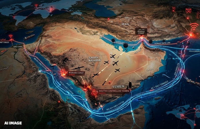 Iran America War : મધ્ય પૂર્વમાં વધી રહેલા યુદ્ધના તણાવે હવે માત્ર તેલ અને ગેસના પુરવઠા પર જ નહીં, પરંતુ સમગ્ર વિશ્વની ડિજિટલ લાઈફલાઈન સમાન 'સબમરીન ઈન્ટરનેટ કેબલ્સ' પર પણ ખતરો પેદા કર્યો છે. જો ઈરાન કે તેના સમર્થિત જૂથો દ્વારા સમુદ્રના પેટાળમાં બિછાવેલા આ કેબલોને નુકસાન પહોંચાડવામાં આવશે, તો ભારત સહિત સમગ્ર વિશ્વમાં બેંકિંગ, સોશિયલ મીડિયા અને એઆઈ (AI) સેવાઓ ખોરવાઈ શકે છે.