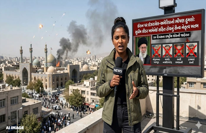 Israel Iran War : ઈઝરાયેલ અને અમેરિકા દ્વારા ઈરાન પર કરવામાં આવેલા હુમલામાં સુપ્રીમ લીડર અલી ખામેનેઈ માર્યા ગયા છે. આ ઘટના બાદ ઈરાનમાં 40 દિવસના રાષ્ટ્રીય શોકની જાહેરાત કરવામાં આવી છે. ખામેનેઈના મૃત્યુથી મધ્ય પૂર્વમાં સ્થિતિ અત્યંત ગંભીર અને તણાવપૂર્ણ બની ગઈ છે, અને ઈરાન દ્વારા પણ વળતો પ્રહાર કરવામાં આવી રહ્યો છે.