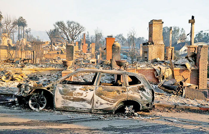 Los Angeles Fire | અમેરિકાના લોસ એન્જલસની આગ વધુ ભીષણ બની છે અને ભારે પવનના લીધે અગ્નિશામક દળોએ આગ ઓલવવા ભારે સંઘર્ષ કરવો પડી રહ્યો છે. આગમાં ૨૫ના મોત થઈ ચૂક્યા છે અને શહેરના ૬૦ લાખથી વધુ લોકો આગના ઓથાર હેઠળ છે. આગે દક્ષિણ કેલિફોર્નિયાના મોટા પટ્ટાને આવરી લીધો છે, તેમા લોસ એન્જલસ સિવાયના શહેરોનો પણ સમાવેશ થાય છે.