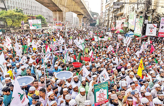 બાંગ્લાદેશમાં એકબાજુએ આગામી વર્ષે ચૂંટણી યોજવાની જાહેરાત થઈ ચૂકી છે ત્યારે તેની સૌથી મોટી ઇસ્લામિક પાર્ટી જમાત-એ-ઇસ્લામીએ ફેબુ્રઆરીમાં ચૂંટણી યોજવાનો તીવ્ર વિરોધ કર્યો છે. તેણે ચૂંટણી પૂર્વે પ્રસ્તાવિત ચાર્ટરને કાયદાકીય આધાર આપવા રેફરેન્ડમની માંગ કરી છે આમ નહીં થાય તો ત્યાં સુધી ચૂંટણી જ નહીં યોજાય તેમ જણાવ્યું છે.