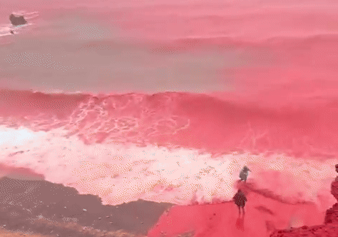 Hormuz Island Red Beach: ઈરાનના હોર્મુઝ દ્વીપ પર ભારે વરસાદના કારણે એક વિચિત્ર અને ડરામણું દ્રશ્ય ઊભું થયું છે. દ્વીપના પ્રખ્યાત રેડ બીચ (લાલ બીચ) પર વરસાદનું પાણી પણ લાલ રંગનું થઈ ગયું છે. દરિયાના મોજા લોહી જેવા ક્રિમસન (ઘાટો લાલ) થઈ ગયા છે. સોશિયલ મીડિયા પર વાઇરલ વીડિયોમાં જોઈ શકાય છે કે, ચટ્ટાનમાંથી લાલ પાણી વહીને દરિયામાં ભળી રહ્યું છે, જેના કારણે સંપૂર્ણરીતે બીચ અને આસપાસનું પાણી લાલ થઈ ગયું છે.