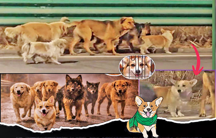 - ઘાયલ સાથીને સુરક્ષિત રાખીને શ્વાનોની આગેવાની લેનાર કોર્ગી તમામને સલામત રીતે દોરી ગયો