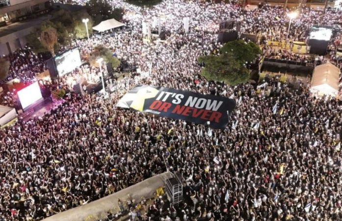 Huge protest right now in Tel Aviv demanding an exchange deal with the Palestinian resistance and the removal of Netanyahu’s government.