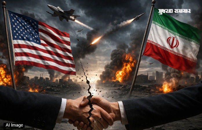 US Iran Ceasefire Deal on Brink of collapse: અમેરિકા અને ઈરાન વચ્ચે થયેલું સીઝફાયર(યુદ્ધવિરામ) 24 કલાકની અંદર જ તૂટવાની અણી પર આવી ગયું છે. ઈરાને આરોપ લગાવ્યો છે કે આ ડીલની 10 મુખ્ય શરતોમાંથી 3 શરતોનું ઉલ્લંઘન કરવામાં આવ્યું છે. ઈસ્લામાબાદમાં કાયમી શાંતિ માટેની વાતચીત શરૂ થાય તે પહેલા જ આ કરાર જોખમમાં મુકાઈ ગયો છે. ઈરાની સંસદના અધ્યક્ષ મોહમ્મદ બાગેર ગાલિબફે સ્પષ્ટ કર્યું છે કે, જો શરતોનું પાલન ન થતું હોય તો હવે આ સીઝફાયર કે વાતચીતનો કોઈ અર્થ રહેતો નથી.