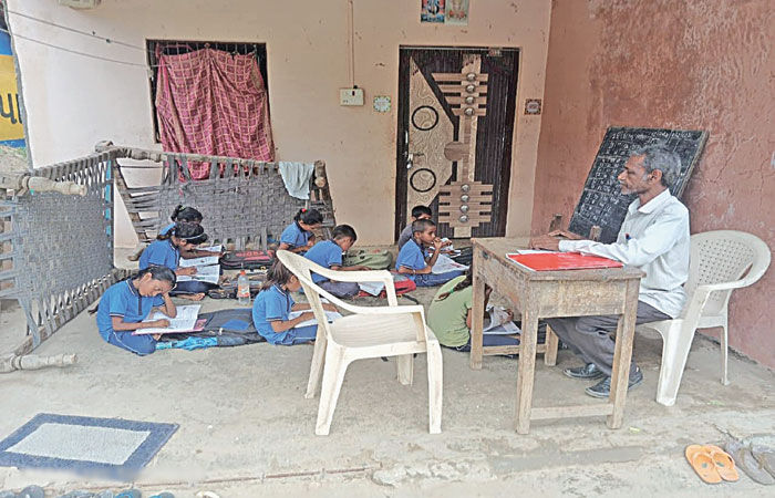 - 62 વિદ્યાર્થીઓ શાળાની બહાર તથા મકાનના આંગણામાં બેસી ભણવા માટે મજબૂર