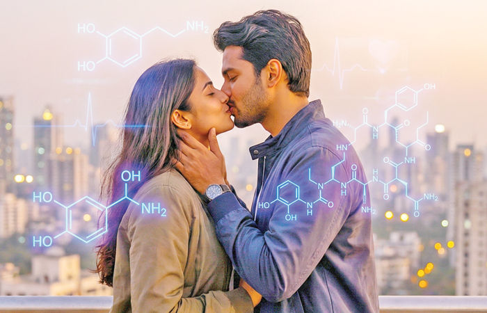 જ્યારે બે હોઠ એકબીજાને સ્પર્શે છે, ત્યારે માત્ર એક સાદી ક્રિયા જ થતી નથી. આખું શરીર એક રંગબેરંગી રાસાયણિક ઉત્સવમાં ડૂબી જાય છે. આ ક્ષણે, લાખો વર્ષોના ઉત્ક્રાંતિનો સાર એક સુંદર અનુભવમાં પ્રગટ થાય છે. હોઠના કોમળ સ્પર્શની સાથે જ, મગજમાં ડોપામાઇનના ફુવારા છૂટી પડે છે. જાણે કોઈએ આનંદના દરવાજા ખોલી નાખ્યા હોય. મગજનું રિવોર્ડ સેન્ટર પ્રજ્વલિત થઈ જાય છે. પ્રથમ એેડ્રેનાલિન લોહીમાં ઝડપથી વહે છે. હૃદય પોતાની સામાન્ય ગતિથી અચાનક વિમુખ થઈને ઝડપી ધબકારા મારવા લાગે છે. જે હૃદય મિનિટમાં ૬૦-૭૦ વાર ધબકતું હોય, તે હવે ૧૦૦ કે તેથી વધુ વાર ધબકે છે. રક્તવાહિનીઓ વિસ્તરે છે. ગાલ પર કોમળ લાલાશ ફરી વળે છે. પછી આવે છે ઓક્સીટોસિન. જેને 'પ્રેમનું રસાયણ' કહે છે. જ્યારે મુક્ત થાય છે, ત્યારે બે લોકો વચ્ચે એક અદ્રશ્ય, પણ અતિ શક્તિશાળી બંધન બંધાય છે. ચહેરાના ૩૪ સ્નાયુઓ એકસાથે સક્રિય થાય છે. હોઠ પરનાં લાખો ચેતાકોષો, સંવેદનાઓને મગજમાં મોકલે છે.જ્યાં પ્રેમની ભાષાનું ડી-કોડિંગ થાય છે.