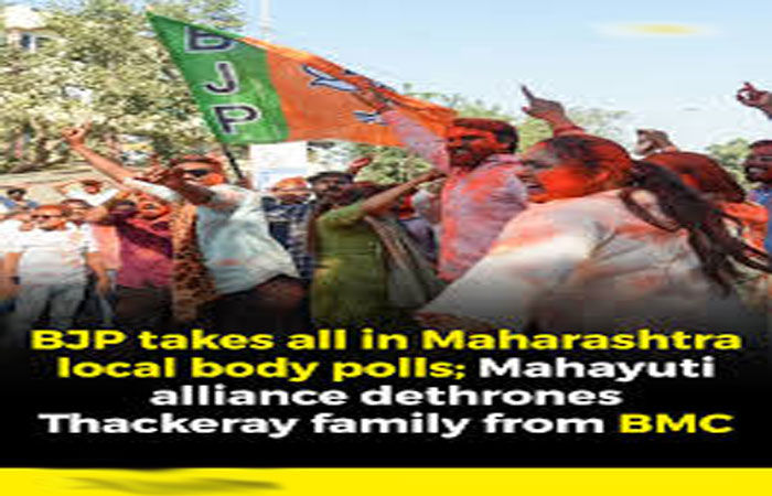 મુંબઈ - આશરે ત્રણ દાયકા બાદ પહેલીવાર મુંબઈ મહાનગરપાલિકામાં ઠાકરે પરિવારનાં શાસનનો અંત આવ્યો છે. ૭૪૦૦૦ કરોડનું વાર્ષિક બજેટ ધરાવતી અને એશિયાની સૌથી ધનાઢ્ય મહાપાલિકા ગણાતી મુંબઈ મ્યુનિસિપલ કોર્પોરેશનમાં હવે ભાજપનો મેયર બને તેવું ચિત્ર આજે મહાપાલિકા ચૂંટણીની મતગણતરી બાદ સ્પષ્ટ થયું છે. આ ચૂંટણીમાં પિતરાઈ ભાઈઓ ઉદ્ધવ ઠાકરે તથા રાજ ઠાકરેએ બે દાયકા બાદ હાથ મિલાવ્યા હતા પરંતુ તેમનું આ પુનર્મિલન કામયાબ રહ્યું નથી. ૨૨૭ બેઠકોમાંથી મોડી રાતના આંકડા અનુસાર ભાજપને ૮૮ અને એકનાથ શિંદેની શિવસેનાને ૨૮ બેઠકો મળતાં ભાજપ-સેનાની યુતિને સાદી બહુમતીથી સત્તા મળી રહી હોવાનું નિશ્ચિત બન્યું હતું. તેની સામે ઉદ્ધવ ઠાકરેની શિવસેના યુબીટીને ૬૬ બેઠક મળી હતી પરંતુુ રાજ ઠાકરેની મનસેને ફક્ત નવ બેઠક મળતાં તેનો કરુણ રકાસ થયો હતો. કોંગ્રેસે શિંદે સેનાની લગોલગ ૨૪ બેઠકો મેળવી હતી. રાજ્યમાં લોકસભા ચૂંટણીમાં ભાજપ અને શિંદે સેનાએ પછડાટ ખાધા બાદ વિધાનસભામાં ક્લીન સ્વીપ કરી તેનું સાટું વાળ્યું હતું અને હવે મહાપાલિકા ચૂંટણીમાં વિજય મેળવી તેમની સ્થિતિ મજબૂત કરી છે. દેશની આર્થિક રાજધાની પર કબ્જો ભાજપનું લાંબા વર્ષોથી ધ્યેય હતું જે આ ચૂંટણીમાં સાકાર થયું છે.