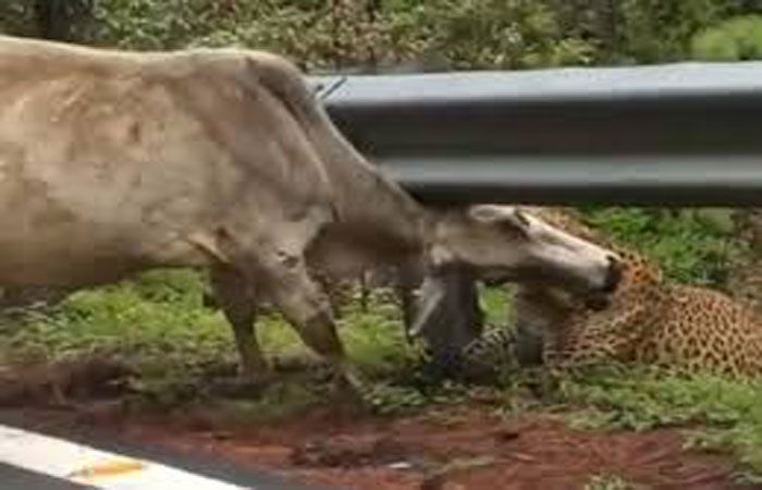 ગાય પર ઘાતક હુમલો કરતા ગાય તત્ક્ષણ મોતને ભેટી હતી. ત્યાર બાદ દીપડો પાળી ઠેકીને