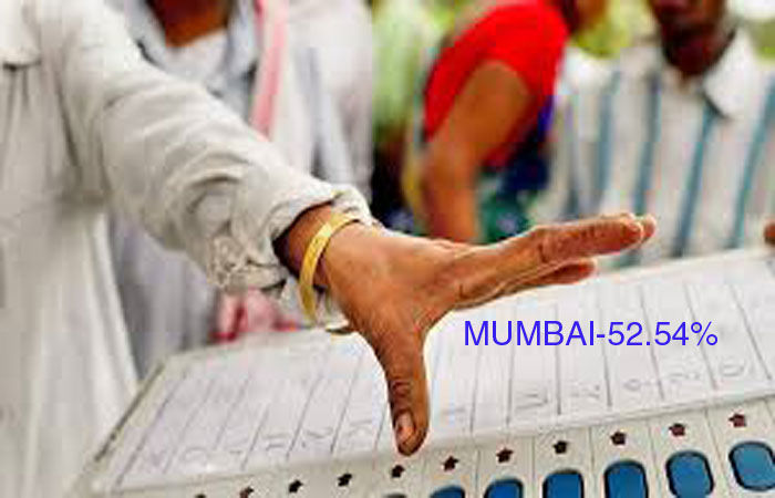 મુંબઈ - મુંબઈ મહાનગરપાલિકાની ચૂંટણીમાં ૫૨.૯૪ ટકા મતદાન નોંધાયું હોવાના ફાઈનલ આંકડા આજે જાહેર કરાયા હતા. ૨૦૧૭ની છેલ્લી ચૂંટણી દરમ્યાન ૫૫.૫૩ ટકા મતદાન થયું હતું. પાલિકા દ્વારા જાહેર કરાયેલ આંકડા મુજબ, ભાંડુપ ઉપનગરીય વિસ્તારમાં વોર્ડ નંબર ૧૧૪માં સૌથી વધુ ૬૪.૫૩ ટકા મતદાન નોંધાયું હતું તો દક્ષિણ મુંબઈના કોલાબા વિસ્તારમાં વોર્ડ નં.૨૨૭માં સૌથી ઓછું ૨૦.૮૮ ટકા મતદાન થયું હતું.