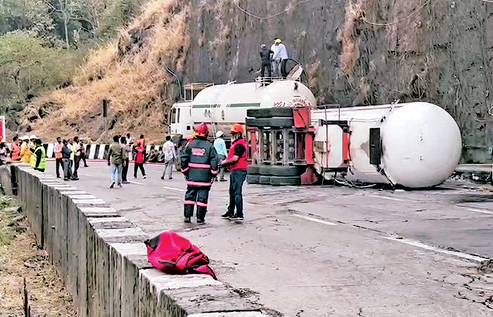 આ ઘટના રાયગઢ જિલ્લાના આડોશી ટનલ પાસે બની હતી.ટેન્કર કથિત રીતે ખૂબ જ ઝડપે જઈ રહ્યું હતું, ડ્રાઈવરે ઢાળને કારણે કાબુ ગુમાવી દીધો અને ટેન્કર પલટી ગયું હતું. અકસ્માત પછી તરત જ ટેન્કરમાંથી ગેસ લીક થવા લાગ્યો મળ્યો હતો.જેના કારણે વાહનચાલકોમાં ગભરાટ ફેલાયો હતો, એમ એક અધિકારીએ જણાવ્યું હતું.