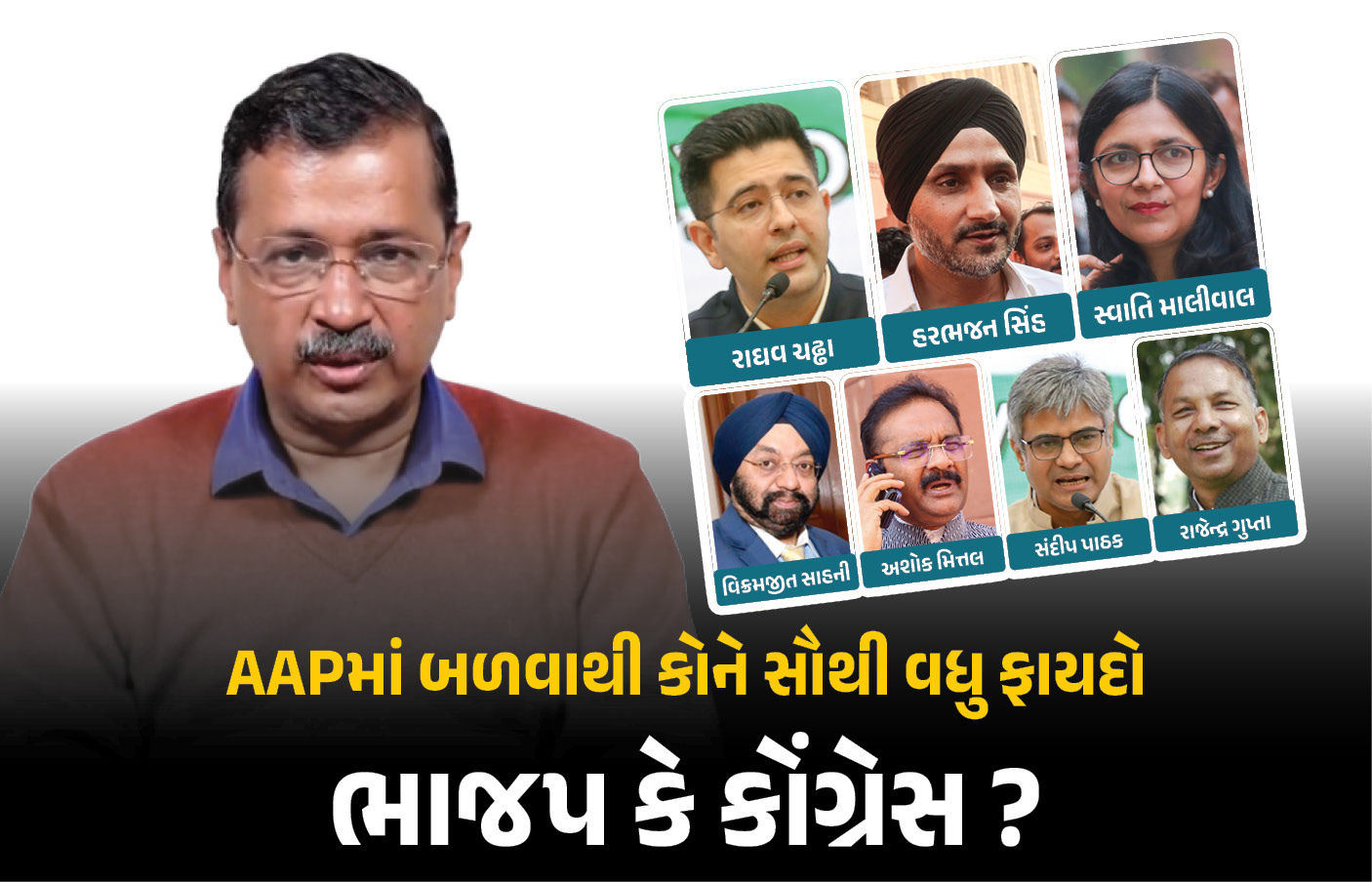 AAP Crisis : આમ આદમી પાર્ટીના 10 રાજ્યસભા સાંસદોમાંથી સાત સાંસદો પક્ષપલટો કરીને ભાજપમાં જોડાઈ જતા પાર્ટીના વડા અરવિંદ કેજરીવાલને સૌથી મોટો ઝટકો લાગ્યો છે. રાજ્યસભાના અધ્યક્ષે પણ AAPના બળવાખોર સાંસદોને સાંસદ તરીકેની માન્યતા આપી દીધી છે. આ સાંસદોમાં રાઘવ ચઢ્ઢા, સ્વાતિ માલીવાલ, હરભજન સિંહ, રાજેન્દ્ર ગુપ્તા, સંદીપ પાઠક, વિક્રમજીત સાહની, અશોક મિત્તલનો સમાવેશ થાય છે. સાંસદો જોડાયા બાદ હવે રાજ્યસભામાં ભાજપ તો પાવરફુલ બની જ ગઈ છે, પરંતુ તેનાથી ઘણા રાજ્યોમાં કોંગ્રેસને પણ મોટો લાભ થઈ શકે છે.
