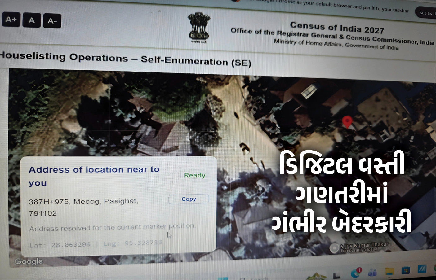 Digital Census India : ભારતમાં પ્રથમ વખત યોજાનારી ડિજિટલ જનગણનાની તૈયારીઓ વચ્ચે એક મોટી ટેકનિકલ ખામીને કારણે વિવાદ ઉભો થયો છે. જનગણના માટેના સેલ્ફ-એન્યુમેરેશન પોર્ટલ પર અરુણાચલ પ્રદેશના ‘પાસીઘાટ’ શહેરને ચીનના ‘મેડોગ’ શહેર તરીકે દર્શાવવામાં આવ્યું હતું. આ ગંભીર ભૂલને દેશની સાર્વભૌમત્વ સાથે જોડીને સોશિયલ મીડિયા પર લોકોએ ભારે રોષ વ્યક્ત કર્યો છે.
