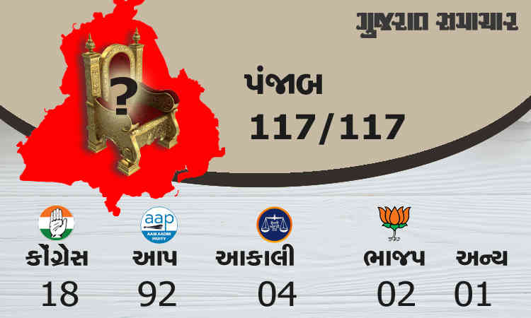 પંજાબની તમામ 117 બેઠકો પર શરૂઆતી પરિણામો બહાર આવ્યા છે. શરૂઆતી તબક્કાની મતગણતરી અનુસાર પંજાબમાં આપ 83 બેઠકો પર આગળ છે જ્યારે બીજા સ્થાને કોંગ્રેસ માત્ર 17 બેઠકો સાથે આગળ છે.