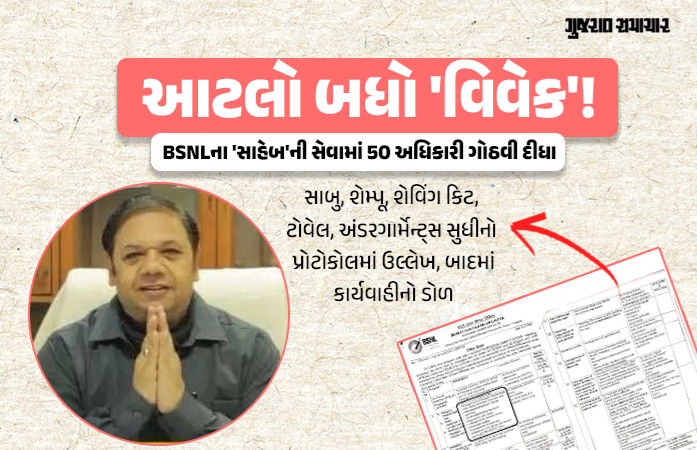 BSNL director in trouble over lavish Prayagraj visit plan: કેન્દ્ર સરકાર VVIP કલ્ચરને સમાપ્ત કરવાની વાતો કરી રહી છે, ત્યારે BSNLના 'ડિરેક્ટર સાહેબ' માટે પ્રયાગરાજમાં સંગમ સ્નાનની રજવાડી વ્યવસ્થાનો વિવાદ થતા સોશિયલ મીડિયામાં લોકો ઠેકડી ઉડાવી રહ્યા છે. વાત એમ છે કે, BSNLના ડિરેક્ટર વિવેક બંજલે પ્રયાગરાજ મુલાકાત માટે 50 અધિકારીને ખડેપગે રાખ્યા હતા. સાબુથી લઈને ટોવેલ અને અન્ડરગાર્મેન્ટ તૈયાર રાખવાના આ પ્રોટોકોલનો પરિપત્ર સોશિયલ મીડિયામાં વાઇરલ થતા જ સરકાર સફાળી જાગી. એટલું જ નહીં, આ વિવાદાસ્પદ પ્રોટોકોલ જાહેર કરનારા PGMT બિજેન્દ્ર કુમાર સિંહની આંધ્ર પ્રદેશ બદલી પણ કરી દેવાઈ.