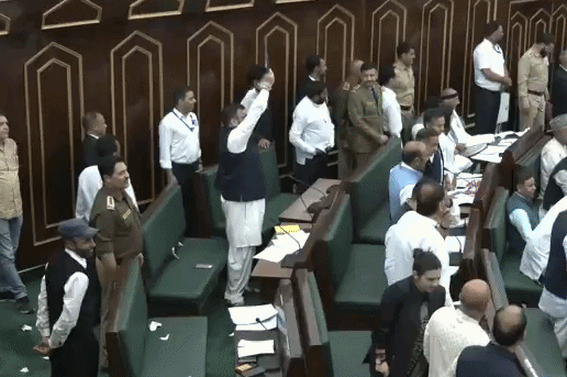 ગૃહની કાર્યવાહી શરૂ થતાં જ નેશનલ કોન્ફરન્સના ધારાસભ્યો વેલમાં ઉતરી આવ્યા હતા. ધારાસભ્યોએ ઈઝરાયલ મુરદાબાદ અને અમેરિકા વિરોધી નારેબાજી કરી હતી. આ દેખાવોનું નેતૃત્વ કરી રહેલા એનસી નેતા તનવીર સાદિક અને અન્ય ધારાસભ્યોએ ઈરાન પ્રત્યે સંવેદનાઓ વ્યક્ત કરી અની ઈઝરાયલી હુમલાની આકરા શબ્દોમાં ટીકા કરી હતી.