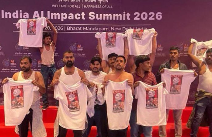 Congress Shirtless Protest at AI Summit : પટિયાલા હાઉસ કોર્ટે ભારત મંડપમમાં આયોજિત 'ઈન્ડિયા-AI ઈમ્પેક્ટ સમિટ' દરમિયાન અર્ધનગ્ન હાલતમાં સરકાર અને વડાપ્રધાન નરેન્દ્ર મોદી વિરુદ્ધ પ્રદર્શન કરનારા યુથ કોંગ્રેસના 4 કાર્યકરોની જામીન અરજી ફગાવી દીધી છે અને તેમને 5 દિવસના પોલીસ રિમાન્ડ પર મોકલી આપ્યા છે. સુનાવણી દરમિયાન દિલ્હી પોલીસે આ કાર્યકરો અંગે મોટો દાવો કર્યો હતો. પોલીસે કોર્ટને જણાવ્યું કે, આ વિરોધ પ્રદર્શન નેપાળમાં થયેલા હિંસક 'જેન-ઝી' (Gen-Z) આંદોલનથી પ્રેરિત હતું, જેણે ત્યાંની સરકાર ઉથલાવી દીધી હતી.