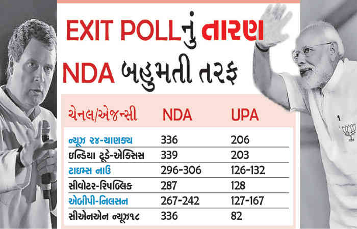 લોકસભાની ચૂંટણી પૂર્ણ થઇ ગઇ છે, આ સ્થિતિ વચ્ચે વિવિધ એજન્સીઓ દ્વારા એક્ઝિટ પોલ જારી કરવામાં આવ્યા છે. જેમાં દાવો કરવામાં આવ્યો છે કે કેન્દ્રમાં ફરી એનડીએની સરકાર બનવા જઇ રહી છે,