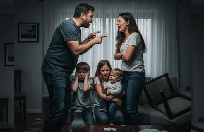 પતિ અને પત્ની વચ્ચે રોજ નાની-મોટી વાતે ઝઘડો થતો હોવાથી પત્ની રિસાઈને પિયર જતી રહી હતી. જે છ દિવસ પહેલાં જ પોતાના ઘરે પરત ફરી હતી. તે દરમિયાન બંને વચ્ચે ફરી ઝઘડો અને મારપીટ થઈ હતી. જેથી પત્નીએ પોલીસ સમક્ષ પતિ વિરૂદ્ધ ફરિયાદ નોંધાવી હતી. ફરિયાદ બાદ પોલીસ ઘરે પહોંચી હતી. પરિવારે જણાવ્યું કે, પોલીસની કાર્યવાહી અને ધમકીના કારણે કર્મવીર ડરી ગયો હતો અને બાળકો સાથે આપઘાત કરવાનો નિર્ણય લીધો.