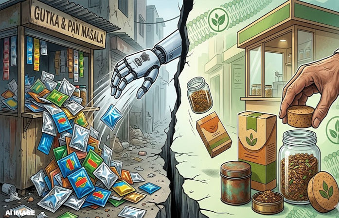 પાન મસાલાના નાના પ્લાસ્ટિક પાઉચ ગમે ત્યાં ફેંકવાને કારણે ગટરો જામ થાય છે અને પર્યાવરણને ભારે નુકસાન થાય છે. આ કચરાનો નિકાલ કરવો લગભગ અશક્ય હોય છે. કુદરતી પેકેજિંગથી આ પ્રદૂષણ ઘટાડવામાં મદદ મળશે.
