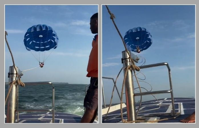 Parasailing Cable Breaks In Goa: ગોવાના બાગા બીચ પર પ્રવાસીઓ માટે એડવેન્ચર જીવલેણ સાબિત થતા રહી ગઈ. રવિવારે સાંજે પેરાસેલિંગ કરી રહેલા એક પ્રવાસીનો હવામાં જ કેબલ તૂટી જતાં તે અનેક ફૂટની ઊંચાઈએથી સીધો ઊંડા દરિયામાં ખાબક્યો હતો. આ સમગ્ર ઘટના કિનારે ઉભેલા એક વ્યક્તિએ મોબાઈલ કેમેરામાં કેદ કરી લીધી હતી, જેનો વીડિયો હાલ સોશિયલ મીડિયા પર વાઈરલ થઈ રહ્યો છે.