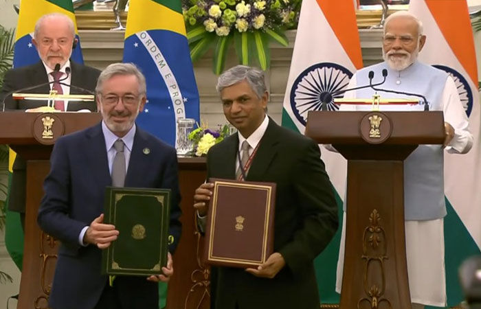 India-Brazil Trade Deal: ભારત અને બ્રાઝિલના સંબંધોમાં આજે (21 ફેબ્રુઆરી) એક નવા અધ્યાયની શરૂઆત થઈ છે. ભારત-બ્રાઝીલ વચ્ચે ટ્રેડ ડીલ પર હસ્તાક્ષર થઈ ચૂક્યા છે. વડાપ્રધાન નરેન્દ્ર મોદી અને બ્રાઝીલના પ્રમુખ લુઇસ ઇનાસિયો લૂલા ડી સિલ્વા વચ્ચે દ્વિપક્ષીય વાતચીતમાં આ મહત્ત્વપૂર્ણ મુદ્દાઓ પર સહમતિ બની છે, જે બંને દેશોની અર્થવ્યવસ્થાને નવી ગતિ આપી શકે છે.