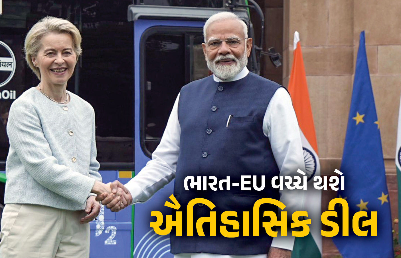 યુરોપિયન કમિશનના અધ્યક્ષ ઉર્સુલા વોન ડેર લેયેન (Ursula von der Leyen) સ્વિત્ઝર્લૅન્ડના દાવોસમાં 20 જાન્યુઆરીએ કહ્યું હતું કે, ‘યુરોપિયન યુનિયન ભારત સાથે એવી ડીલ કરવાની તૈયારીમાં છે, જે આજસુધી કોઈપણ દેશે કરી નથી. આ ડીલથી 27 દેશોને મોટી રાહત થશે.’ બીજીતરફ ભારતના વાણિજ્ય મંત્રી પિયૂષ ગોયલે પણ ભારત-ઈયી વેપાર કરારને ‘મધર ઑફ ઓલ ડીલ્સ’ ગણાવ્યો છે.
