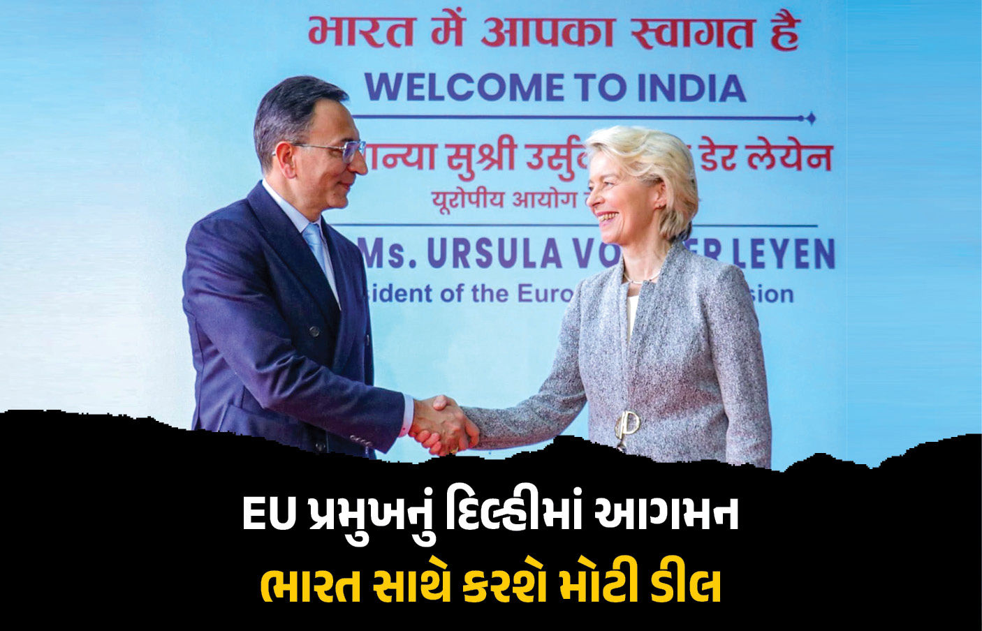 India-European Union Free Trade Agreement Deal : યુરોપીયન સંઘ (EU)ના અધ્યક્ષા ઉર્સુલા વૉન ડેર લેન આજે ભારતની ચાર દિવસની મુલાકાતે આવી ગયા છે. આ ઉપરાંત યુરોપીયન પરિષદના અધ્યક્ષ એન્ટોનિયો કોસ્ટા પણ આવતીકાલે 25 જાન્યુઆરીએ ભારત આવી રહ્યા છે. ઈયુના અધ્યક્ષાની ભારત મુલાકાતની સૌથી મહત્ત્વની વાત એ છે કે, ભારત-ઈયુ આજસુધી વિશ્વમાં કોઈપણ દેશે ન કરી હોય તેવી ‘ગેમ ચેન્જર ડીલ’ કરવાની તૈયારીમાં છે. ઈયુના અધ્યક્ષા અને એન્ટોનિયા કોસ્ટા સૌપ્રથમ 26 જાન્યુઆરીએ યોજાનાર પ્રજાસત્તાક દિવસ સમારોહમાં મુખ્ય અતિથિ તરીકે ભાગ લેવાના છે. ત્યારબાદ 27 જાન્યુઆરીએ ભારત-ઈયુ વચ્ચે મોટી બેઠક યોજાવાની છે, જેમાં તેઓ મોટા વેપારી કરાર પર હસ્તાક્ષર કરવાના છે.