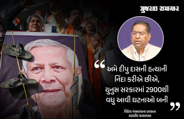 Bangladesh Violence: ભારત સરકારે બાંગ્લાદેશમાં ચાલી રહેલા રાજકીય સંકટ અને લઘુમતી હિન્દુઓ પર અત્યાચાર માટે કડક પ્રતિક્રિયા આપી છે. વિદેશ મંત્રાલયના પ્રવક્તા રણધીર જયસ્વાલે કહ્યું છે કે બાંગ્લાદેશમાં લઘુમતીઓ પર થતી હિંસા ચિંતાનો વિષય છે, અમે દીપુ દાસની હત્યાની નિંદા કરીએ છીએ. અમને આશા છે કે આરોપીઓને કોર્ટના કઠેડામાં લાવવામાં આવશે. ભારત સરકારે બાંગ્લાદેશમાં વચગાળાની યુનુસ સરકારની નીતિ પર ચિંતા વ્યક્ત કરી છે.