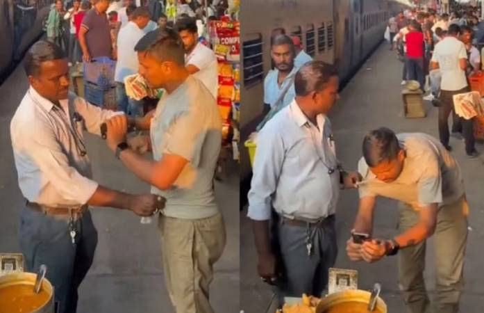 આ સમય દરમિયાન, એક મુસાફર ટ્રેનમાંથી ઉતર્યો, સમોસા ખરીદવા ગયો અને ઓનલાઈન ચુકવણી કરવાનો પ્રયાસ કર્યો, પરંતુ પેમેન્ટ ફેલ થયું. તે જ સમયે, ટ્રેન રવાના થઈ ગઈ. ગભરાયેલા મુસાફર ટ્રેન પકડવા દોડ્યો, પરંતુ સમોસા વેચનાર તેનો કોલર પકડીને માંગ કરી કે, 'મને પૈસા આપો!' આથી મુસાફરે પોતાની પાસે રોકડ ન હોવાનું જણાવ્યું. તેમ છતાં, સમોસા વેચનારએ જવા દેવાનો ઇનકાર કર્યો. આથી મુસાફરે સમોસાના બદલામાં પોતાની ઘડિયાળ ઉતારીને આપી, જેથી તે ટ્રેન ચૂકી ન જાય. આ આખી ઘટના કોઈ મુસાફરે તેના મોબાઈલ ફોનમાં રેકોર્ડ કરીને સોશિયલ મીડિયા પર શેર કરી હતી, જેનો વીડિયો વાઈરલ થયો હતો.